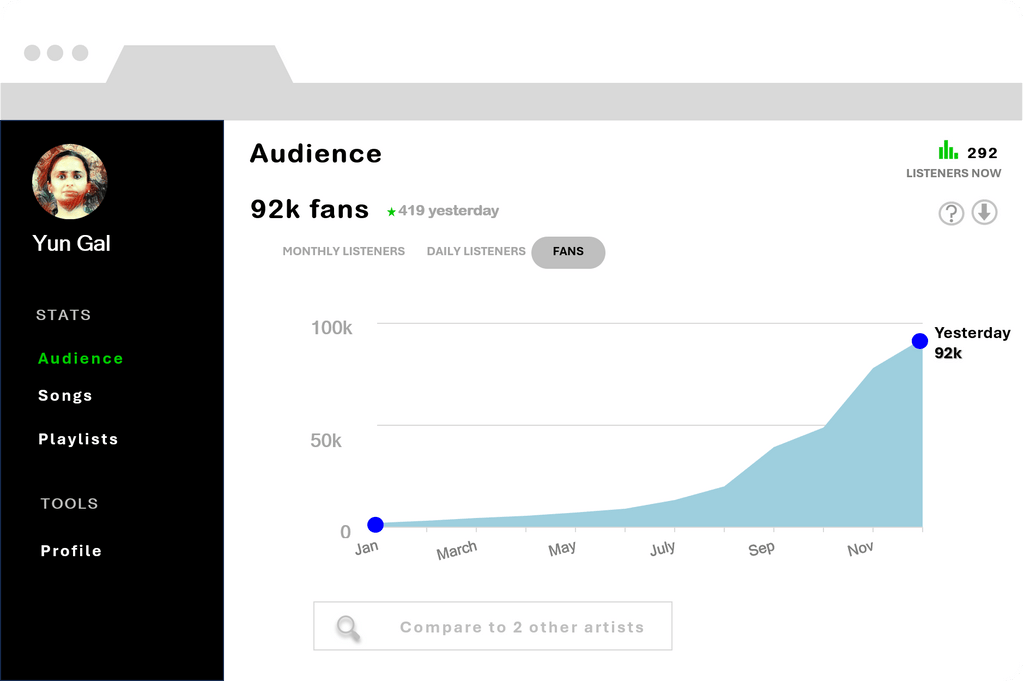 - We help artists find and grow their audience by making sense of the numbers. From ad performance to fan behavior, we use real data — not gut feelings — to refine your strategy and fuel your momentum.